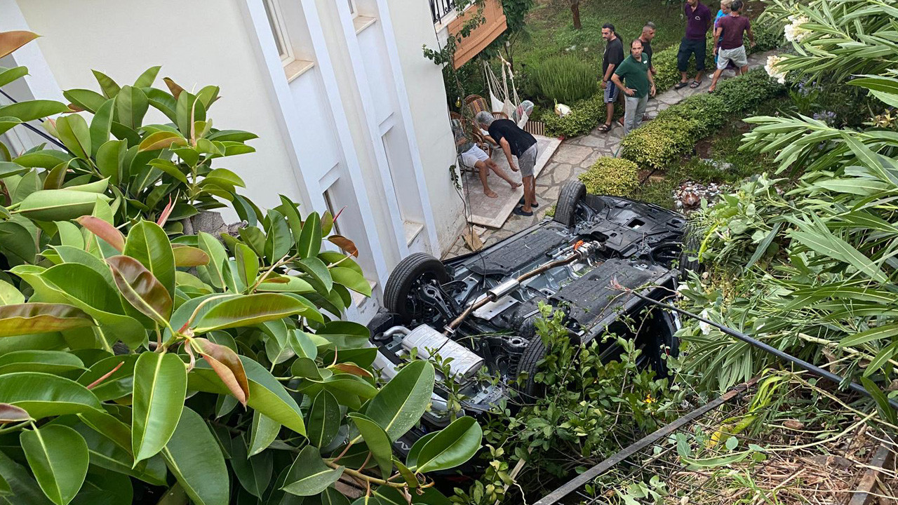 Marmaris'te otomobil istinat duvarını aşıp bahçeye uçtu! Ölü ve yaralılar var