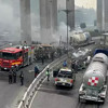 Patlamanın etkisiyle yaklaşık 30 araç alev aldı ve bölgeyi yoğun duman kapladı.