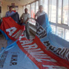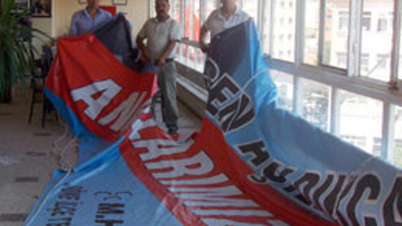 Söke İlçe Merkezinde asılı olan pankartın tek taraflı kesildiğini gören partililer sabahın erken saatlerinde pankartı indirdi.