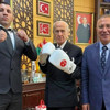 MHP Genel Başkanı Devlet Bahçeli, parti logosunun bulunduğu boks eldivenleriyle poz verdi.