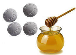 Dağıtmak için parmağınızla ıslak Aspirin`in üzerine hafifçe bastırmanız yeterli. Aspirinler dağılınca üzerine bir çay kaşığı bal koyun ve iyice karıştırın. Bu karışımı yüzünüze sürün ve 10 dakika bekleyin. Eğer çok bal koyarsanız otururken yüzünüzden ballar damlar, bir çay kaşığı fazlasıyla yeterli olacaktır.