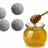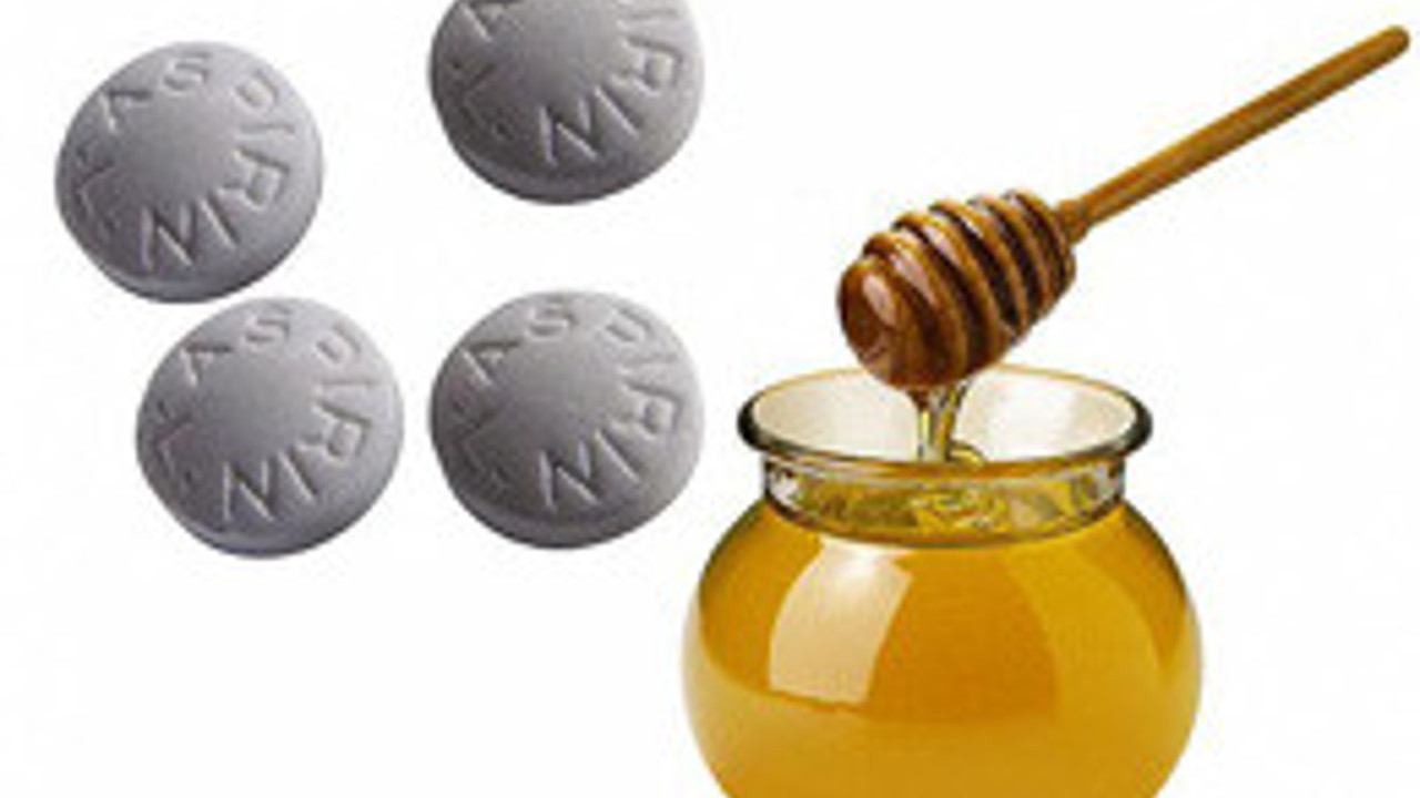 4 Aspirin, 1 çay kaşığı bal, çay tabağı, parmak