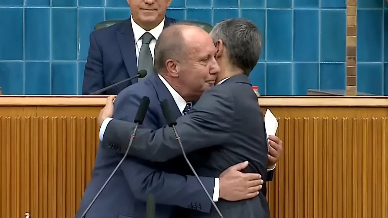 Memleket Partisi Genel Başkanı Muharrem İnce, eski partisi CHP'ye geri döndü. İnce'ye rozetini "Kendisini baba ocağına davet ettik" diyen Özgür Özel taktı.