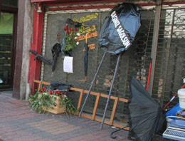 Abone olŞentürk'ün çalıştığı yere şemsiyeler ve siyah çelenk bırakıldı.