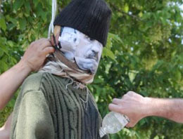 Açıklamanın ardından sloganlar atan Alperen Ocakları üyesi grup üzerinde terör örgütü elebaşısı Abdullah Öcalan'ın fotoğrafının bulunduğu cansız mankeni temsili olarak önce idam etti daha sonra da üzerine benzin dökerek yaktı.