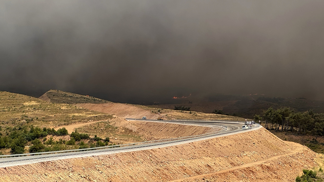 Ekipler, rüzgarın kuvvetli olduğu bölgede yangını kontrol altına almak için çalışmalarını sürdürüyor.
