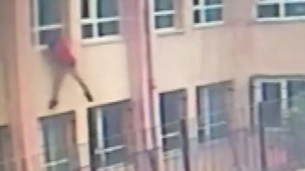 Yaşanan dehşet anları güvenlik kameralarında da saniye saniye yansıdı. Görüntülerde sınıfın penceresine çıkan öğrenci, bir süre aşağıya bakıyor ve ardından düşüyor. Olayın ardından veliler panik içerisinde okulun bahçesine koşuyor.