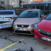 Bahçelievler'de İSPARK tarafından işletilen otoparkta 8 araca çarptıktan sonra 5 metre yüksekten düşen otomobilin kadın sürücüsü yaralandı.