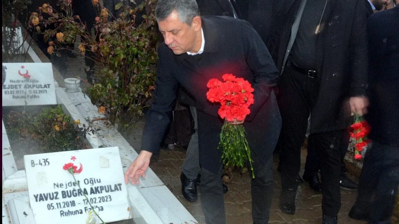 Milletvekilleri ile Ankara Büyükşehir Belediye Başkanı Mansur Yavaş’ın da eşlik ettiği CHP Genel Başkanı Özgür Özel, ilk olarak Kapıçam Şehir Mezarlığı’na geçti. Özel, burada depremde yakınlarını kaybedenlerle bir araya geldi. Kuran-ı Kerim okunup dua edilmesinin ardından Özel, beraberindekilerle depremde hayatını kaybedenlerin mezarlarına karanfil bıraktı.