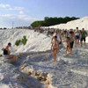 Abone olTuristler, Pamukkale ile birlikte hinterlandındaki Hierapolis Antik Kenti'ni ziyaret etmek ve antik havuzdaki şifalı suya girmek için adeta akın ediyor.