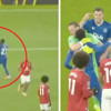 Karşılaşmanın 13. dakikasında gelişen Manchester United atağı sonrası takım arkadaşı Michael Keane ile kısa süreli gerilim yaşayan ve sinirlerine hakim olamayarak tokat atan 36 yaşındaki Senegalli futbolcu Idrissa Gueye, kırmızı kart gördü.