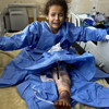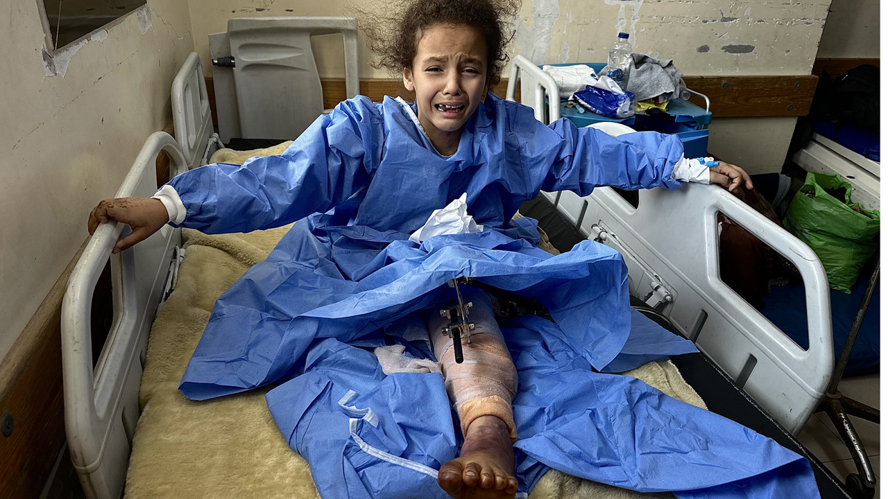 İsrail ordusunun Gazze Şeridi'nin güneyindeki Han Yunus kentinde çadırlara düzenlediği saldırıda yaralanan 8 yaşındaki Sila Madi, tedavi için getirildiği Nasır Tıp Kompleksi’nde sağlık personelinden yardım bekliyor.