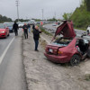 Yoldaki ulaşım kısa süreliğine kontrollü sağlandı, bariyerlere saplanan otomobil iş makineleriyle kaldırıldı.