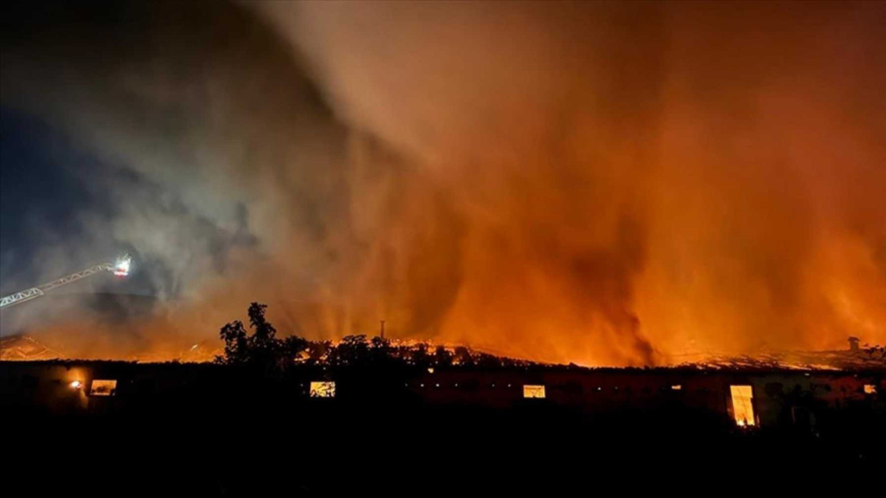 Yangın nedeniyle bölgede yoğun duman oluşurken, ara ara patlama sesleri duyuldu.