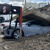 Çökmenin etkisiyle 3 araç duvarın altında kaldı, 1 araç ise oluşan boşluğa düşüp zarar gördü.