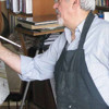 Kedinin boynundan aldığı kılları güvercin teleğinden geçirerek hazırladığı fırçaları kullanarak, kendi yaptığı büyüteç altında çalışmalarını gerçekleştirdi.