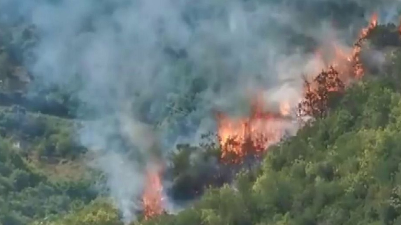 Yangına, karadan itfaiye araçlarıyla, havadan da helikopterle müdahale ediliyor.