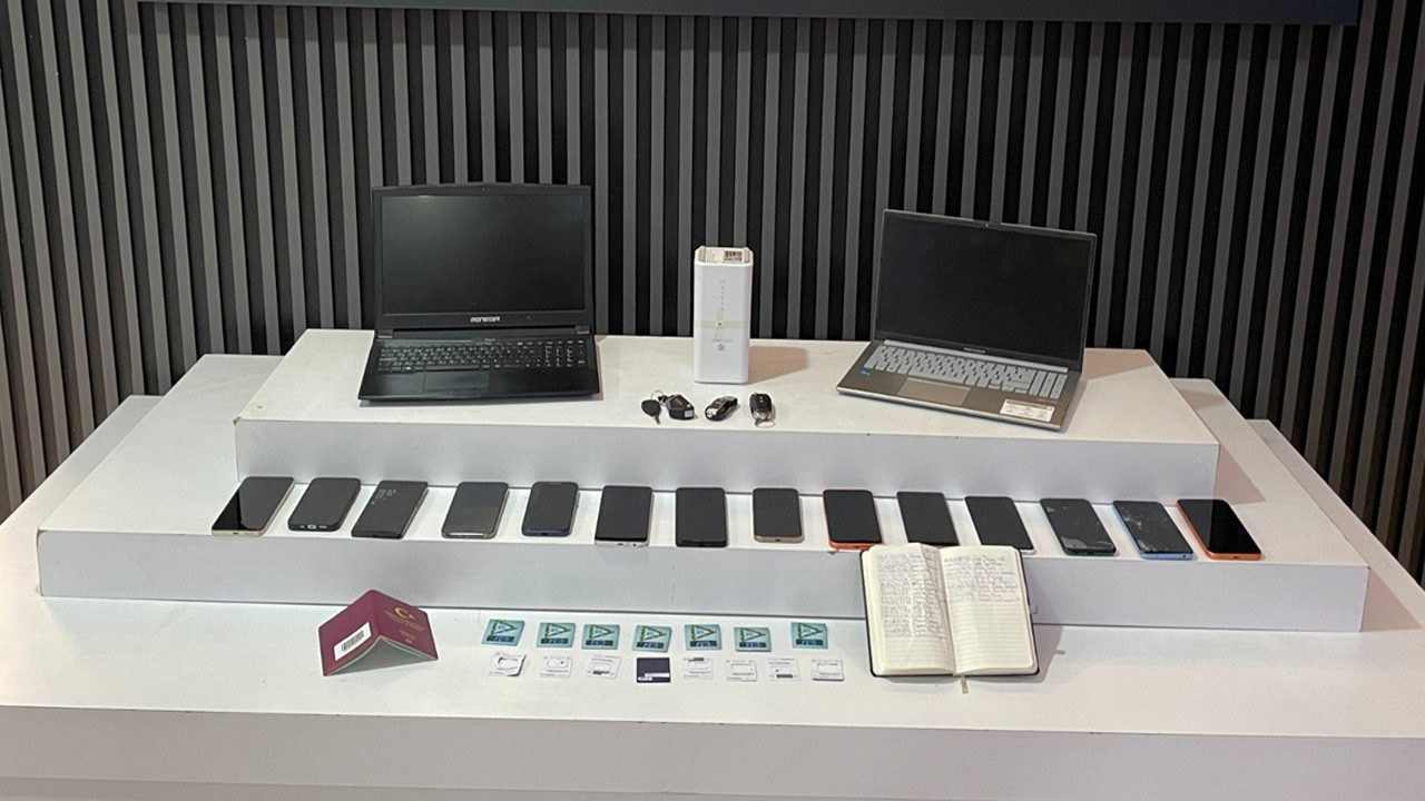 Adreste yapılan aramada, 14 cep telefonu, 20 SIM kart, 2 dizüstü bilgisayar, internet sağlayıcı ve içerisinde çok sayıda iletişim numarası bulunan ajanda ele geçirildi.