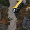 Sarıyer'de kuvvetli yağış nedeniyle derenin üzerindeki yol çöktü. Çökme sonucu pikap ile kamyonet dereye düşerken, bazı iş yerlerini ise su bastı.