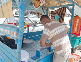 2 yıldır yaz aylarında karlambaç satarak geçimini sağlamaya çalışan karlambaç ustası, "Bu mesleği Adana'da öğrendim. Önceleri kaselere buz rendeliyoruz. Sonrada tatlandırıcı boya koyuyoruz.