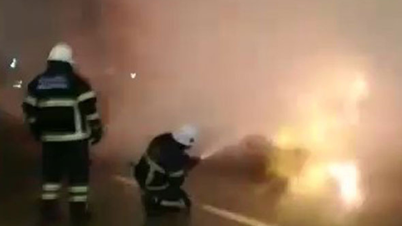 Kısa süre sonra olay yerine gelen itfaiye ekipleri araçta çıkan yangını söndürmek için çalışma başlatırken, polis tarafından ise yol trafiğe kapatıldı. İtfaiye ekipleri tarafından yapılan ve yaklaşık yarım saat süren söndürme çalışmaları neticesinde alevler kontrol altına alınarak söndürüldü. Çıkan yangında otomobil kullanılamaz hale gelirken, yaşanan olayda yaralanan ya da dumandan etkilenen olmadı. İtfaiye ekipleri tarafından yapılan ilk incelemelerde yangının elektrik kontağından çıktığı belirlendi.