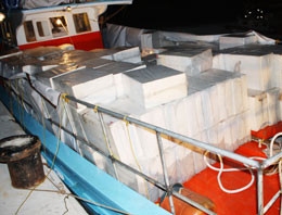 Sigaraları tekneden indiren ve araçlara yüklediği tespit edilen F.Y., A.T., U.S, K.İ., M.Y., M.K. M.E.T, M.C. ve O.A isimli 9 şüpheli gözaltına alındı.