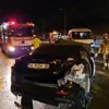 İtfaiye ekipleri kaza sonrası olası bir yangına karşı araçlara su tuttu.