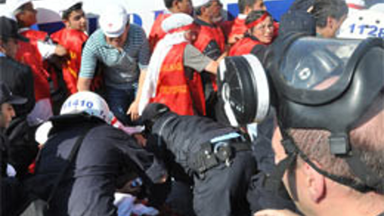 TAYAD'lılara sopalarla saldıran, üzerlerine taş ve şişe atan saldırganları polis güçlükle engelledi.