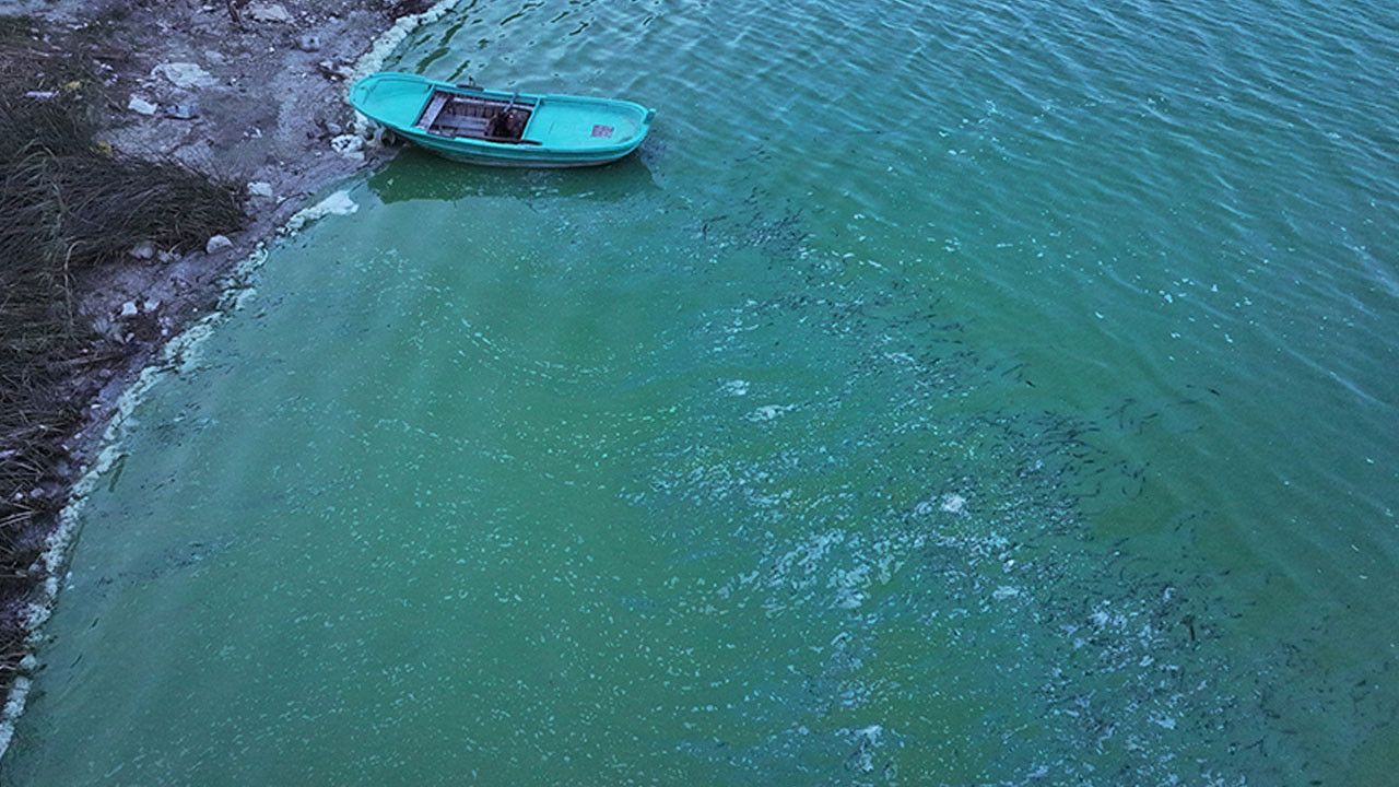 Suda fark edilen renk değişimi dronla havadan görüntülendi.