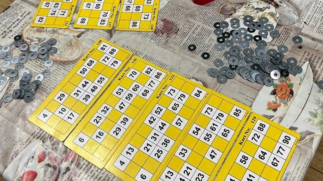 Kahvehanede yapılan aramada kumarda kullanılan 91 tombala kartı, 4 bin 95 lira ile 345 cıvata puluna el koydu.