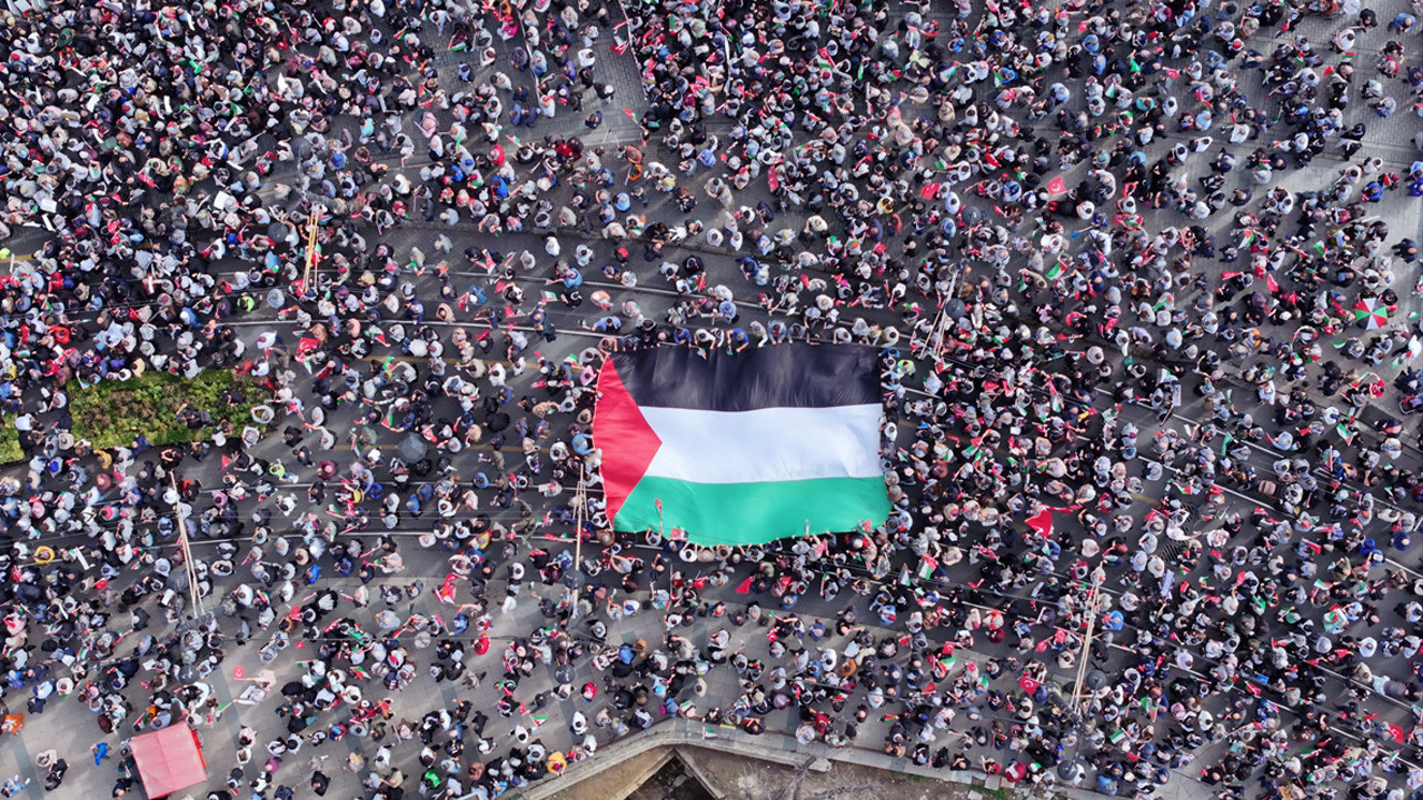 Filistin'e Destek Platformu çatısı altında bir araya gelen binlerce kişi Ayasofya Camisi önünde toplandı. Buradan başlayan yürüyüş, Eminönü Meydanı'nda sona erecek.