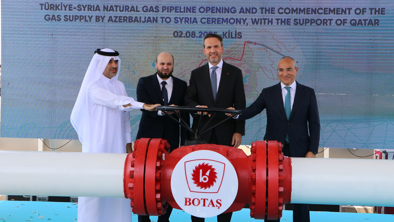 Türkiye'den Suriye'ye ilk doğal gaz akışı başladı. Enerji ve Tabii Kaynaklar Bakanı Alparslan Bayraktar, Türkiye-Suriye Doğal Gaz Boru Hattı açılış törenindeki konuşmasında Suriye'ye doğal gaz akışının başlamasına ilişkin, "Türkiye-Suriye dostluğunun enerji alanındaki nişanesi olan Türkiye-Suriye Doğal Gaz Boru Hattı'nın açılışını gerçekleştiriyoruz." dedi.