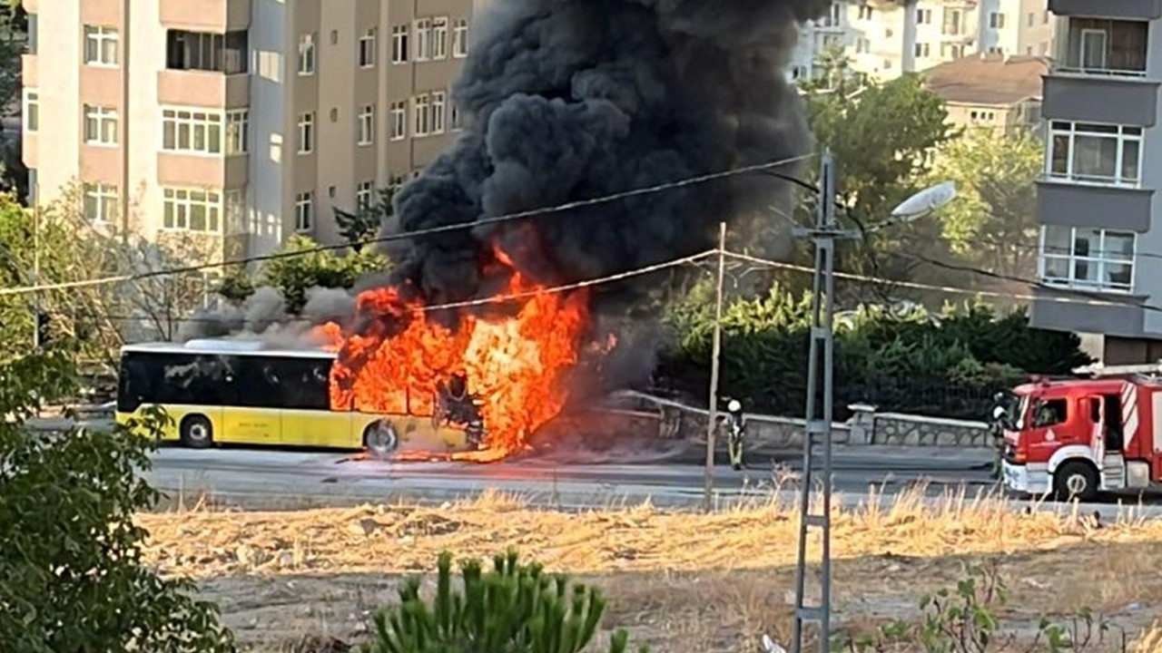 Ümraniye'de yolcuların bulunduğu İETT otobüsü, seyir halindeyken yanarak kullanılamaz hale geldi.