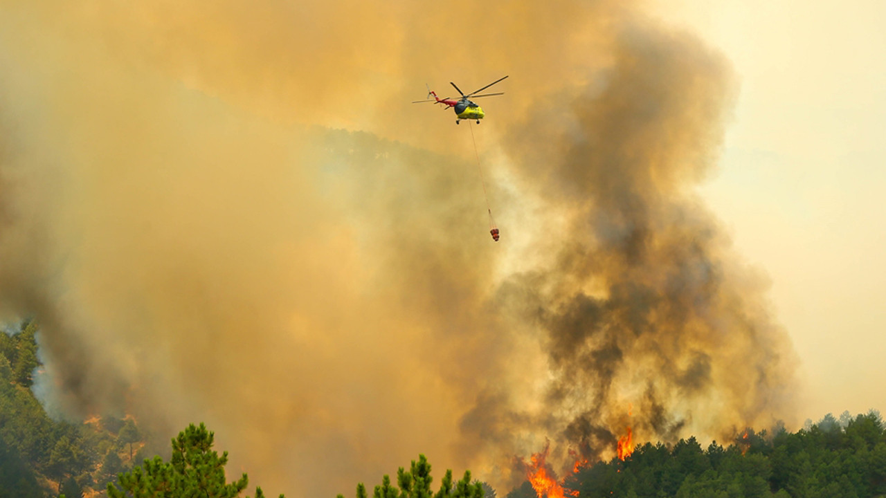 İhbar üzerine bölgeye 2 helikopter ve Orman İşletme Müdürlüğü'ne bağlı çok sayıda arazöz sevk edildi.